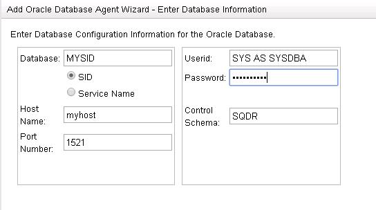 Database: source Oracle database name (SID or Service Name). In the case of a multitenant container database (Oracle 12c & later), this value should be that of the root container.