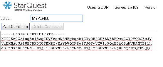 1. In SQDR Control Center, select Manage Certificates from the Databases menu.