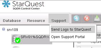 To send logs to StarQuest support, choose a database and then select Send Logs to StarQuest from the Support menu: