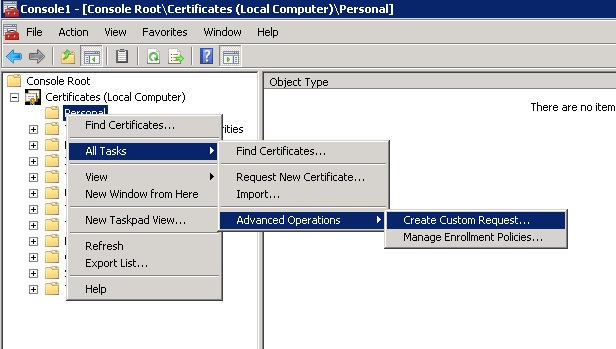 The following example shows the use of Microsoft Active Directory Certificate Services. Both Certificate Services and the WWW Publishing Service (IIS) should be running on the certificate server. Note that Certificate Services do not necessarily need to be run on a domain controller.