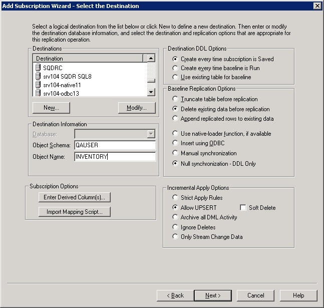 • Also verify that Incremental Apply Options is Allow UPSERT. If you create the subscription under the incremental group (rather than the source, Allow UPSERT should already be selected.