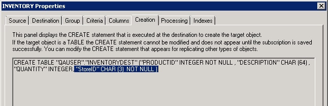 Starting touch-up of destination table: Index INVENTORYIR created over ("StoreID", "PRODUCTID")
