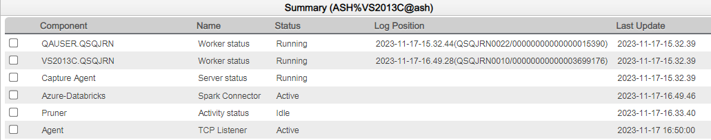 In SQDR Plus version 6.30 or later, a new status object has been added to the Summary view of the agent to show the current state of the Scala notebook. An example of the Spark connector status object can be seen below: