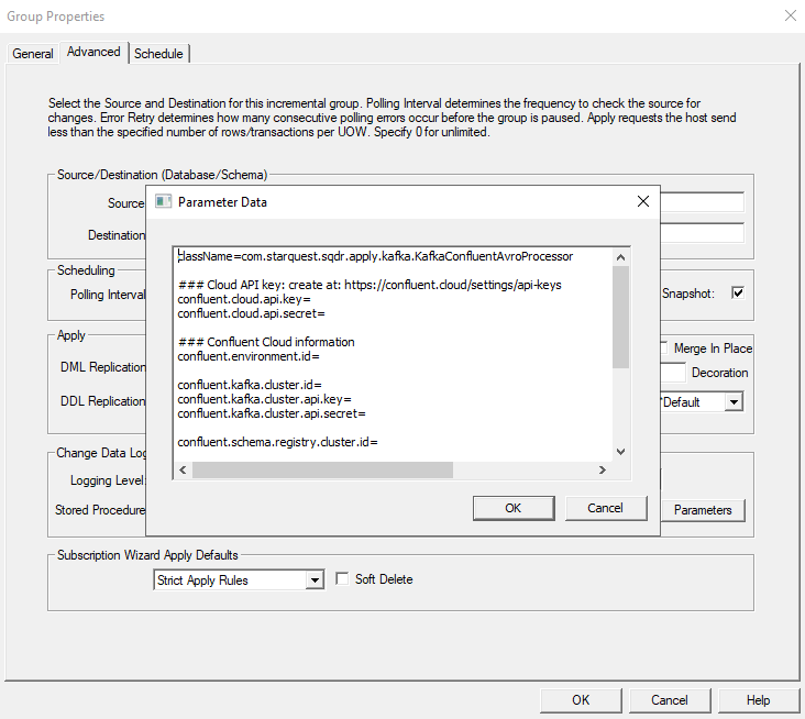 Note: The Confluent parameters may differ depending on if the environmet is Confluent Cloud or Confluent Platform.