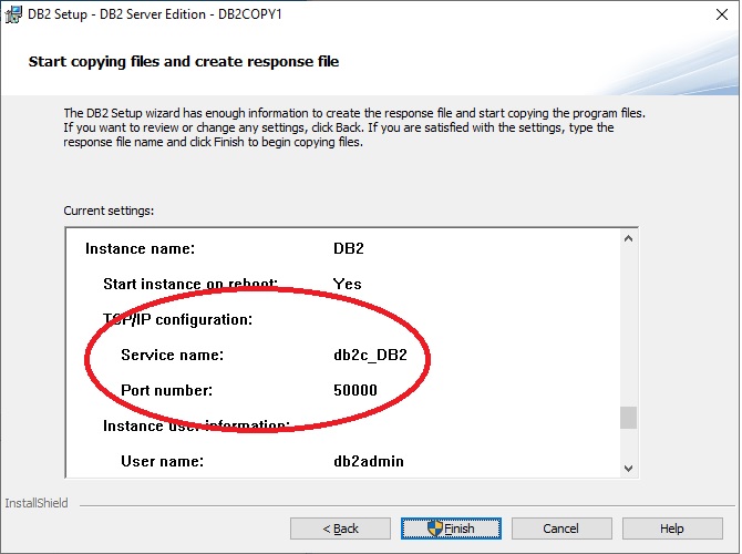 If you need to change the port after installation, edit C:\Windows\System32\drivers\etc\services (/etc/services on Linux), change the value of db2c_DB2, and restart Db2.