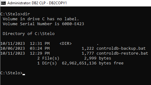 - Download the controldb-backup.bat onto the C:\Stelo directory