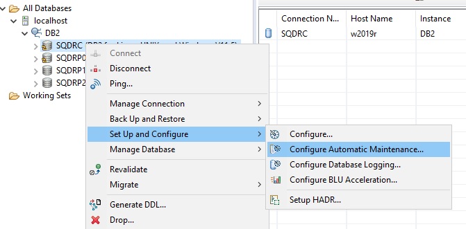 2. Right-click on the database name and select Setup and Configure, then Configure Automatic Maintenance.